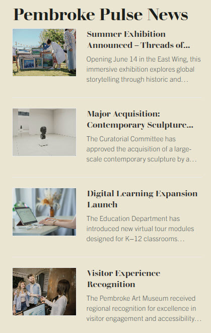 - Integrated events calendar for exhibitions, staff activities, and important dates