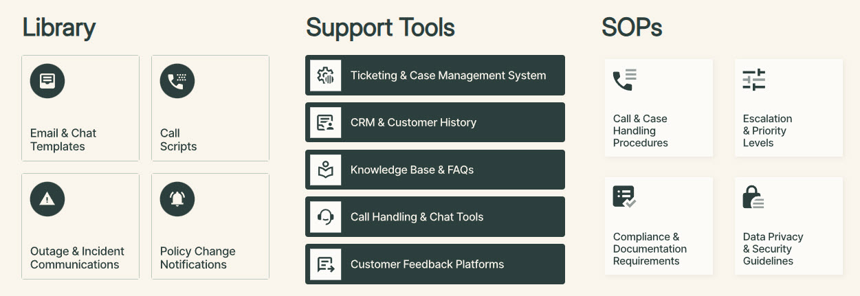 - Links to SOPs, support platforms, and core resources