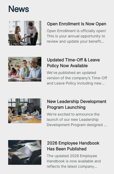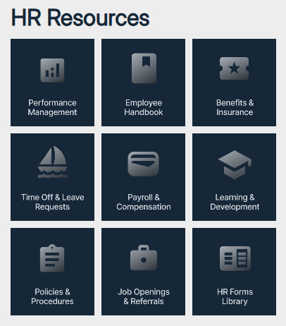 - Prominent hero area highlighting the most accessed HR tools and resources