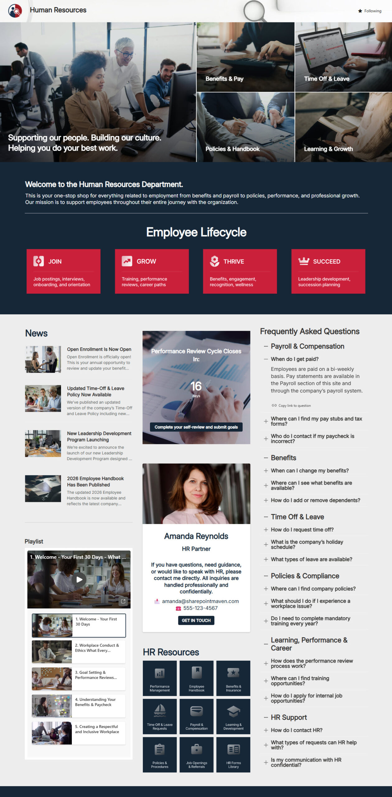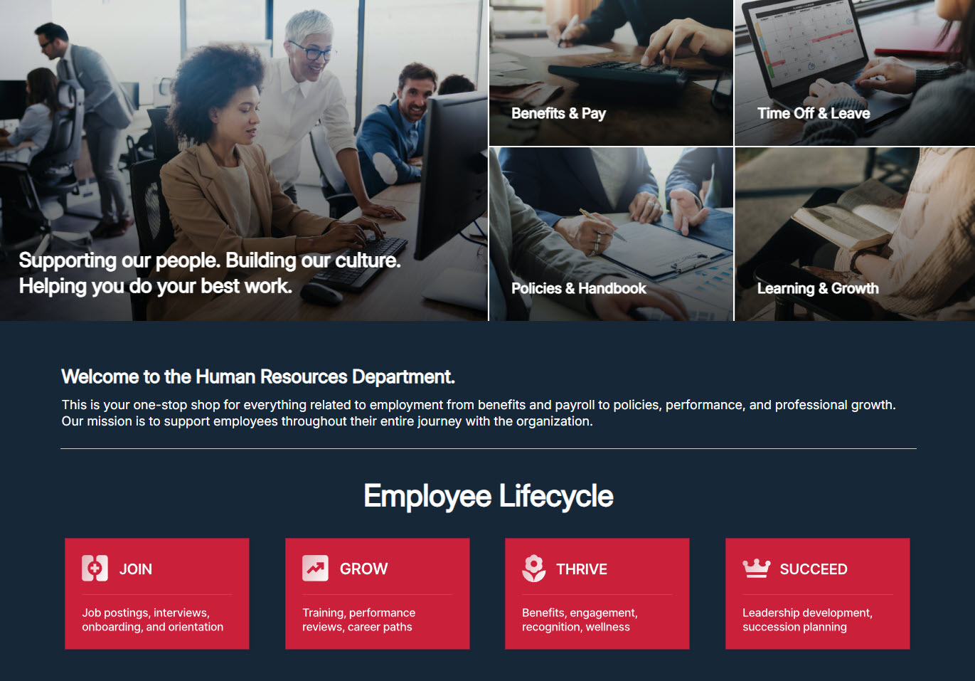 - Employee-facing HR department site designed for clarity, trust, and ease of use