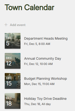 - Integrated Events / Town Calendar web part showcasing official meetings and community schedules