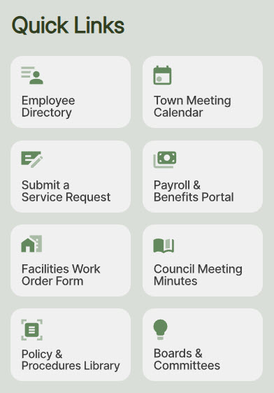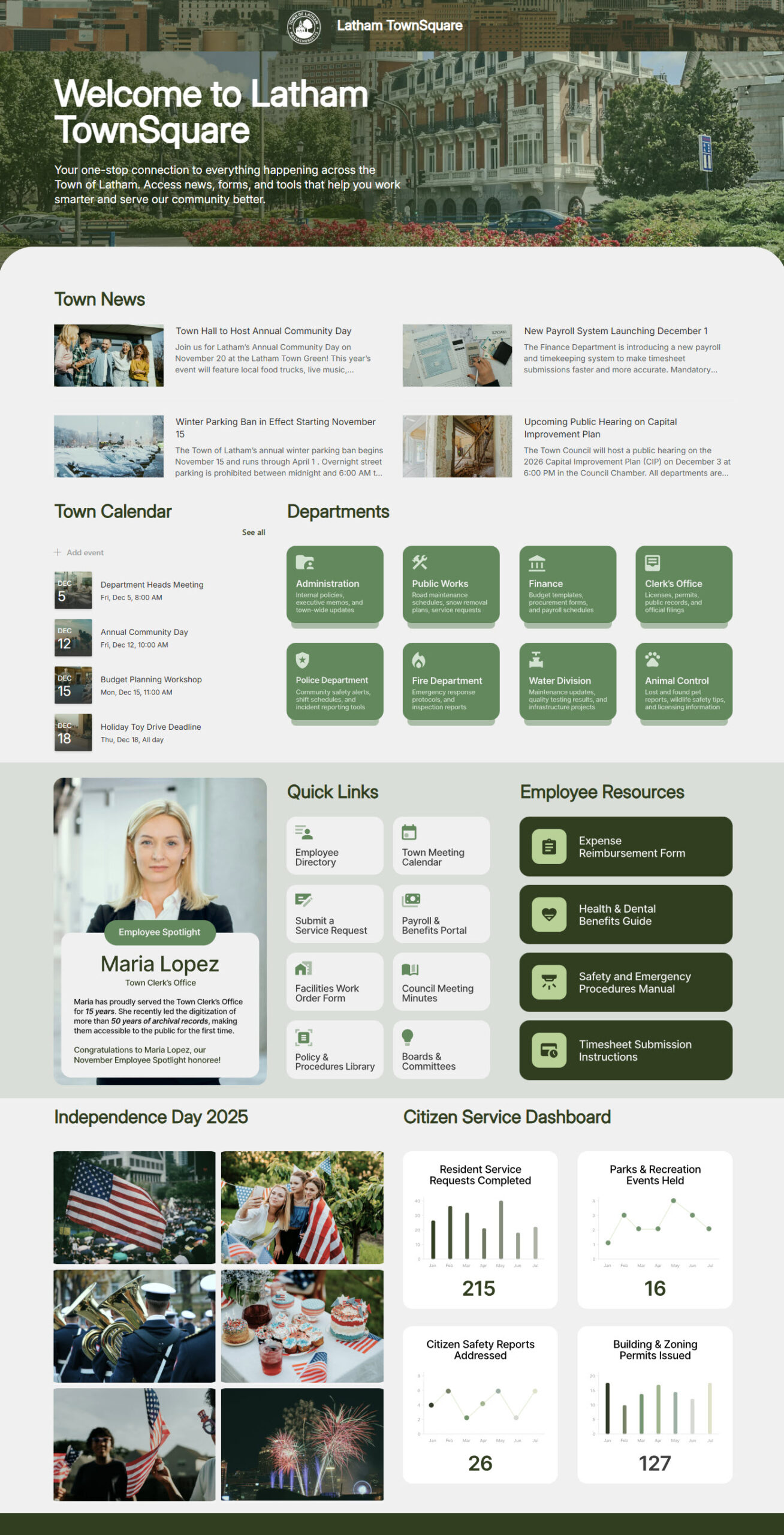- Dynamic Town News web part for timely updates, regulatory notices, and internal communications