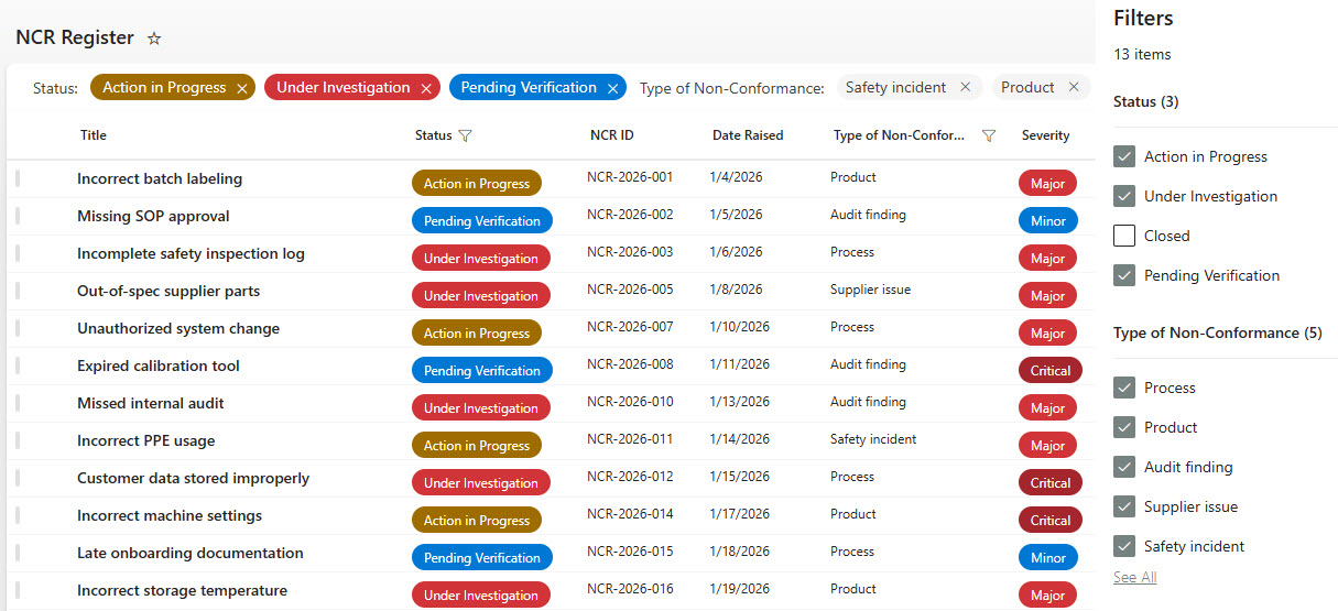 • Improves visibility and control over non-conformance issues