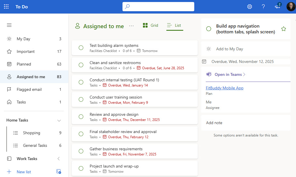 - “Assigned to Me” view pulling tasks directly from Planner