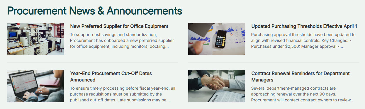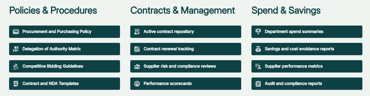 - Reduces procurement delays by making forms, templates, and policies easy to access