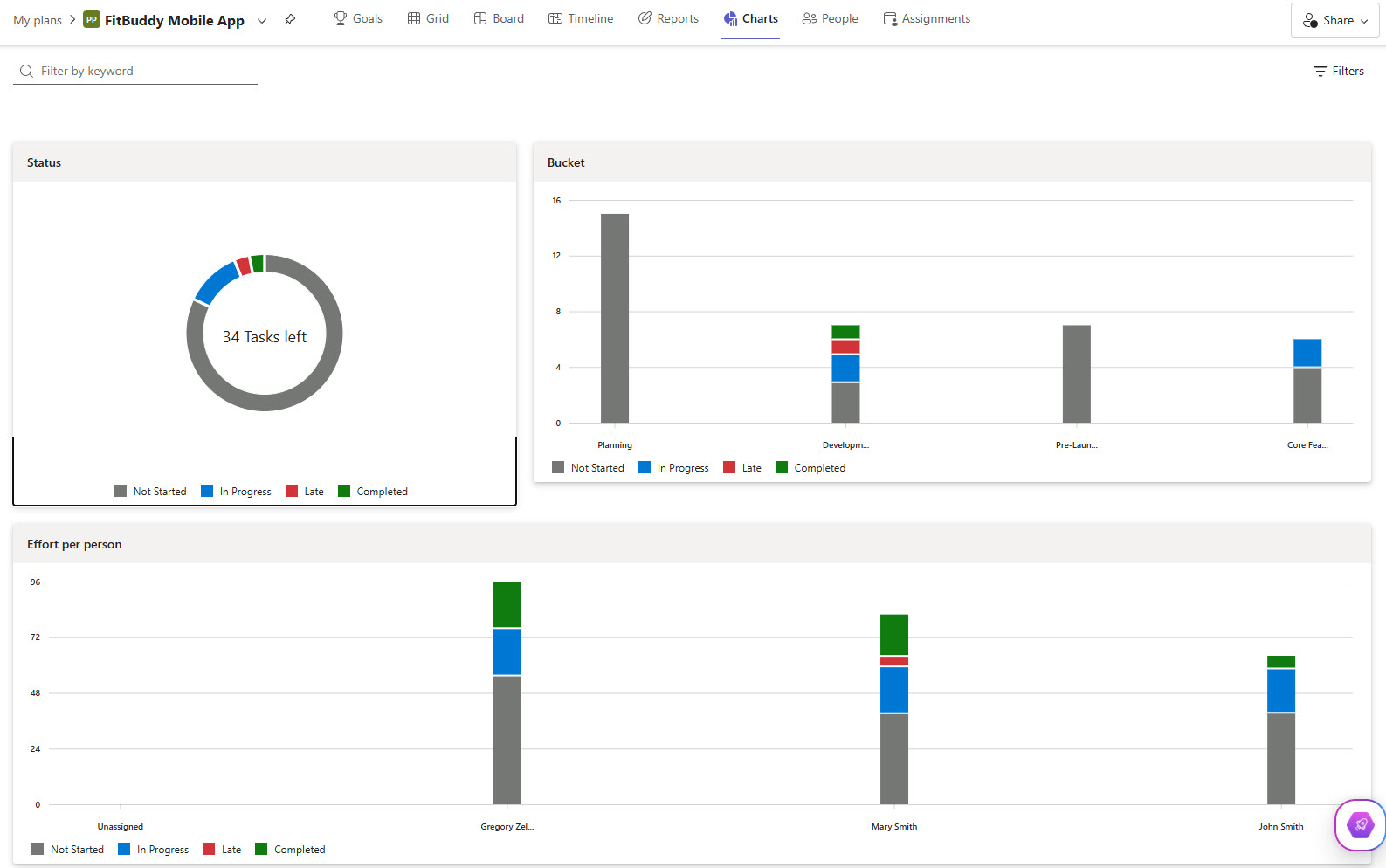 - Visualize sprint progress using Board, Charts, and Grid views